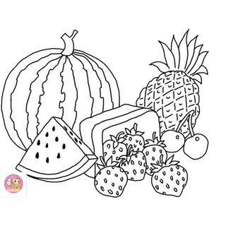Gambar kartun buah buahan hitam putih.